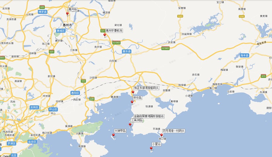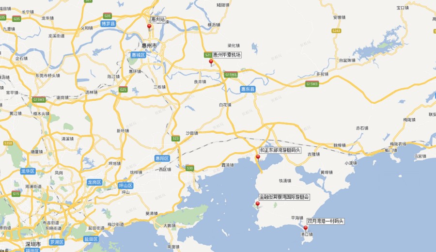 金融街巽寮灣國際游艇會:95公里,預計85分鐘
